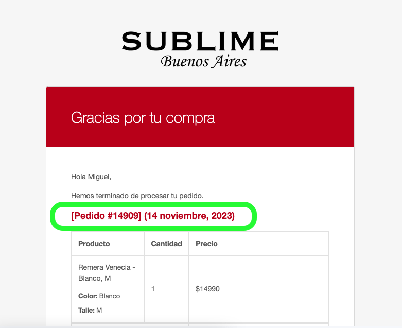 En el email que te enviamos por tu compra vas a encontrar el número de pedido tal como se muestra el la imagen.